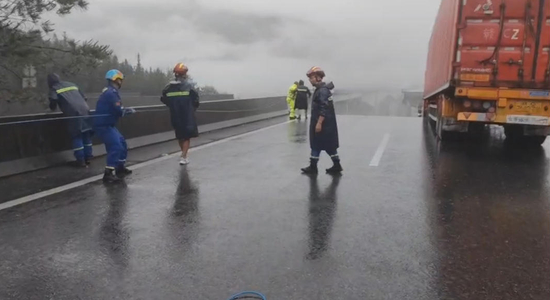 24日上午,记者还联系到贵州蓝天救援队负责人王毅,他告诉记者,24日凌晨,他们贵州、遵义、桐梓、湄潭、大方、凤冈几个队伍收到榕江应急局通知,早上7点钟左右,在三都县往榕江方向排洞停车区大约一百米的位置,即厦蓉高速三都往榕江方向千秋大桥,遇见了高速路桥断裂,一辆卡车悬吊在断桥上。