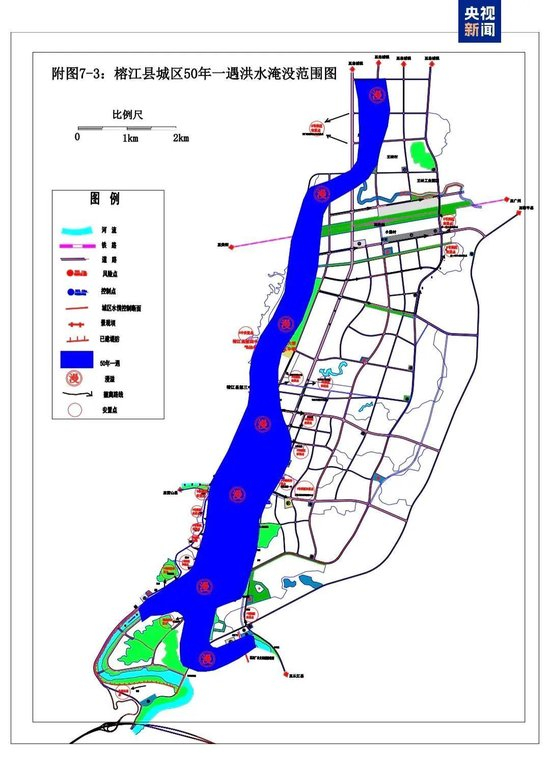 该通知指出,该县城区多处区域面临严重洪水威胁:
