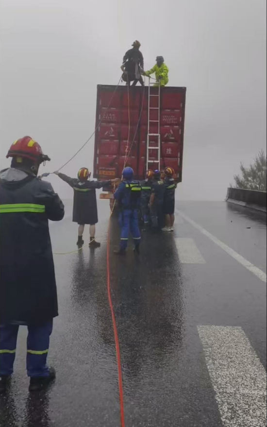“正好我们带了装备,带了楼梯,从他的车尾部上去,然后连接了绳索,然后过去把这个人给救了出来。”王毅表示,由于高速路断了,他们现在还在绕道前往榕江的路上。