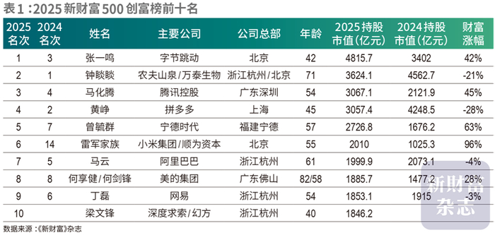 2025新财富创富榜出炉:张一鸣问鼎首富,钟睒睒跌至第二