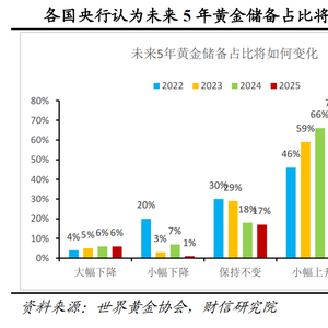 三、未来黄金怎么看:三重驱动下的配置价值。回溯历史,制度解体、美元走弱和流动性宽松是过去两轮黄金大牛市背后的驱动逻辑。第一轮牛市(1970-1980年)源于布雷顿森林体系解体后黄金定价自由化、美元贬值及能源危机引发的全球滞胀;第二轮牛市(2001-2011年)则由互联网泡沫破裂、次贷危机后的流动性宽松导致美元长期贬值驱动,“911”危机事件也驱动短期金价飙升。展望未来,美元信用削弱、避险需求长期化、央行购金趋势化三大逻辑将支撑黄金中长期价值。一是美元“特里芬难题”再现,信用替代深化,黄金非主权属性稀缺性凸显,将对黄金的“超越主权”信用价值形成长期支撑。二是全球秩序重构下,地缘冲突长期存在并日益复杂化,持续提升黄金避险属性。三是央行购金将成为驱动黄金价格上涨的长期驱动力,如世界黄金协会《2025年央行黄金储备调查》数据显示,76%的央行计划未来五年增加黄金储备占比,构成了金价长期上行的坚实基础。