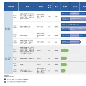从临床进度看,研发速度最快的是CBT-001,一种潜在的同类首创药物,采用多激酶抑制剂,以血小板衍生生长因子受体(“血小板衍生生长因子受体”)、成纤维细胞生长因子受体(“成 纤维细胞生长因子受体”)及血管内皮生长因子受体(“血管内皮生长因子受体”)为靶点,适用于预防翼状胬肉发展及减少结膜充血。预计将能治疗各种中度至重度翼状胬肉。