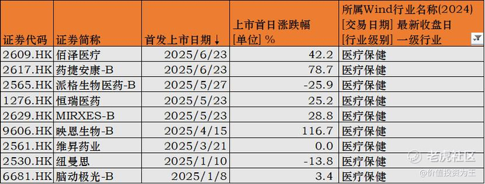 今年上市的生物医药股有9支,其中仅2支首日破发,刚刚上市的药捷安康,首日涨幅更是达到78.7%: $药捷安康-B(02617)$