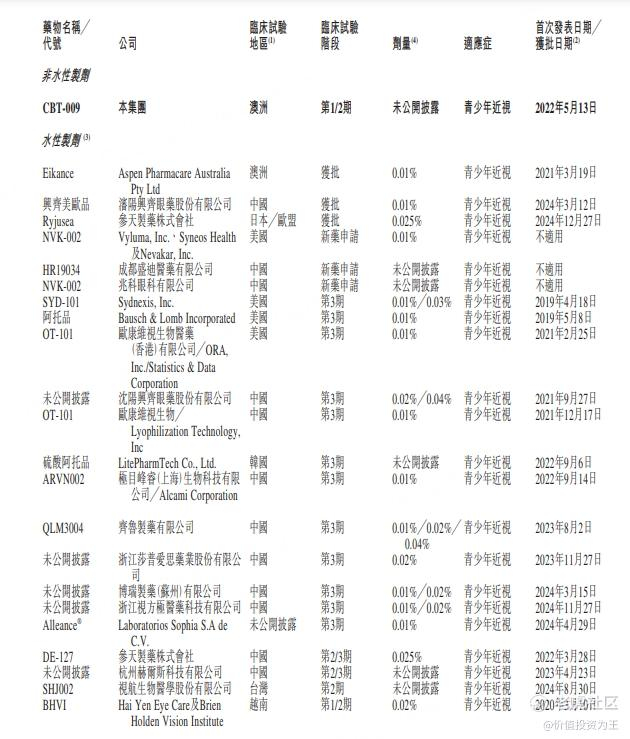 而且,拨康视云的CBT-009并未在国内开启临床试验,而是在澳大利亚及美国,美国尚无获批用于治疗青少年近视的阿托品药物,CBT-009能否获批有一定的不确定性。