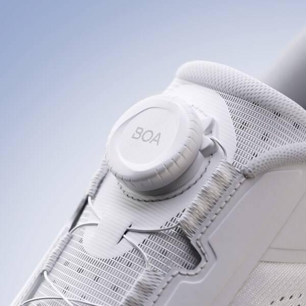 鞋面部分选用大网眼工程网布,在包裹性与透气性之间取得良好平衡,满足夏季训练的清爽穿着需求。同时配备BOA FIT SYSTEM旋钮式锁定系统,穿脱更为高效,贴合度精准可调,带来便捷与稳固兼具的脚感体验,使得跑者在各种场景下都能轻松掌控节奏,跑出新境界。