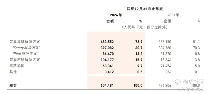 智能座舱解决方案营收占比只有16%,但2024年的营收增速高达467.8%,而智能驾驶解决方案同期增速只有25.2%。