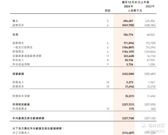 如此低的毛利率,再扣除研发及管理费用,必然会亏损,2024年,佑驾创新净亏损2.2亿:
