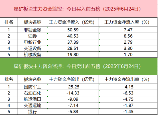 从主力板块资金监控数据来看,非银金融板块主力资金净流入居首。