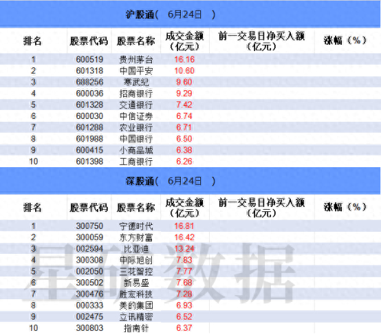 从沪股通前十大成交个股来看,贵州茅台位居首位;中国平安和寒武纪分居二、三位。