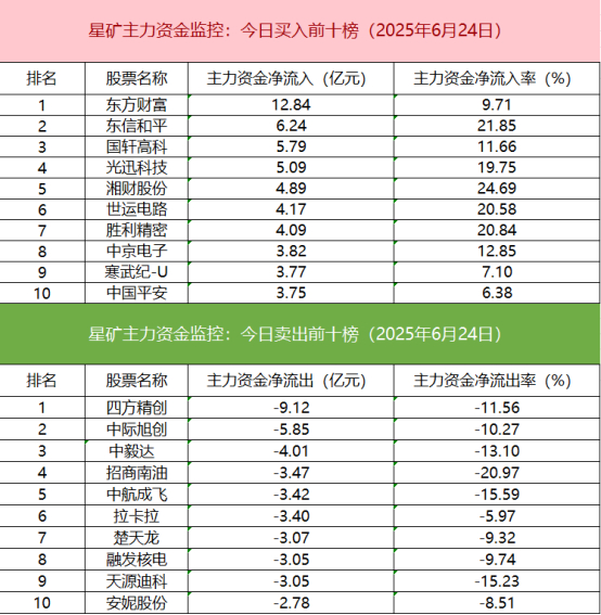 主力资金流出前十的个股中稳定币概念股较多,四方精创净流出居首。