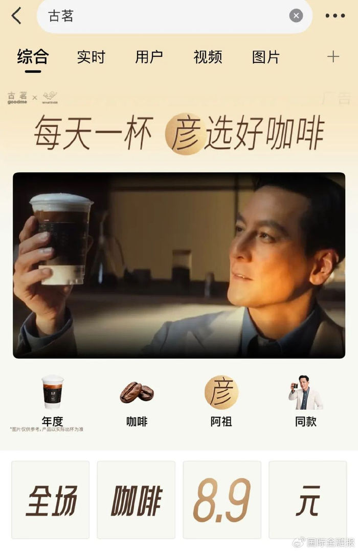 6月23日,微博开屏页面出现了吴彦祖和古茗咖啡的身影。