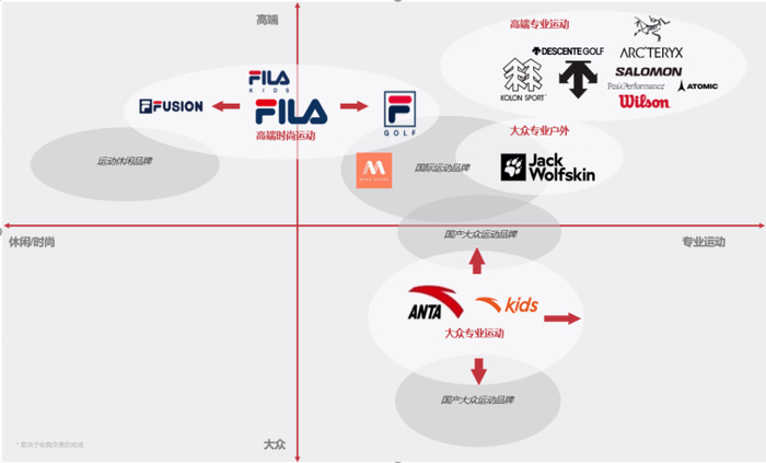 实际上,安踏集团早就意识到集团在户外运动中端市场的薄弱。不过,彼时安踏集团试图通过“拔高”安踏品牌来补足其在中端市场的空白。