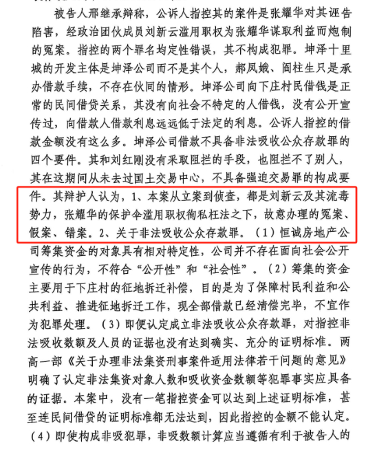 根据山西长治中院作出的判决书内容显示,邢继承在庭审被告席上陈述,检察机关指控他的案件,是刘新云滥用职权、徇私枉法为张耀华谋取利益而炮制的冤案。