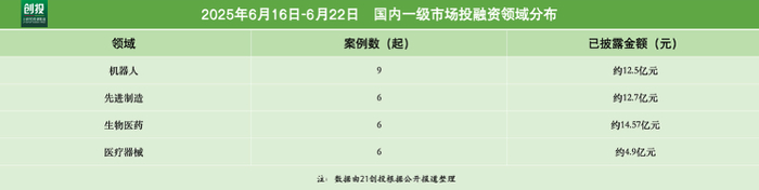 01、机器人、先进制造、生物医药和医疗器械完成多笔融资