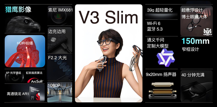 这两种方案的成熟度都足够高,不过单独系统级SoC方案在图像信号处理和AI算力上优势明显,且使得AI眼镜在图像识别效果和轻量化上更出色,所以被诸多AI眼镜厂商在旗舰产品中使用。得益于此,今年即便是带有拍摄功能的新品,重量也都保持在了40g以内。