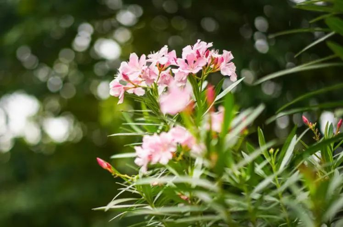 夹竹桃又名笔桃、白羊桃,是一种广泛种植的观赏花,常见颜色有白色、粉红色等。虽然有着漂亮的花朵和四季常青的绿叶,但夹竹桃却是全身带毒的植物,只可远观而不能“亵玩”。