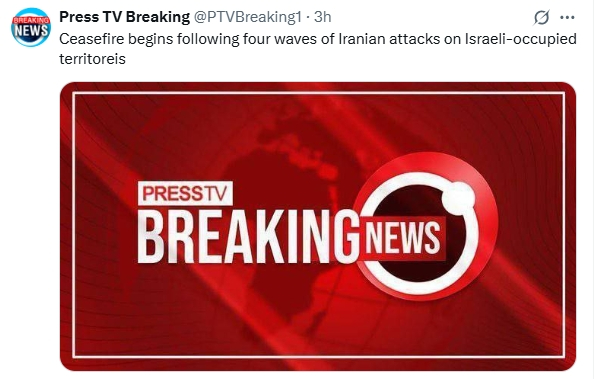 据伊朗官媒Press TV此前报道,随着停火协议生效,伊朗向以色列发射了最后一轮导弹。