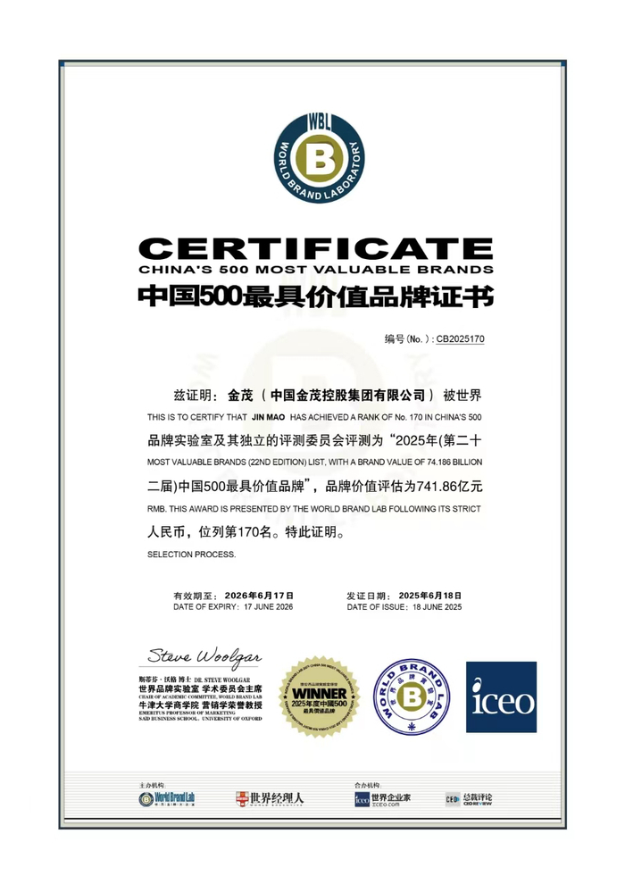 价值741亿!“金茂”连续21年入选“中国500最具价值品牌”