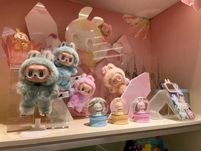 那么为什么买不到?有泡泡玛特的店员透露,进货是统一管理的,也会根据销售情况来调整,但Labubu火爆后,基本都是要客人在线进群,在线预购,等线上购买完毕后再根据订单情况到店取货。店内所展示的Labubu基本都是样品,并不出售,为了防止客人对样品“下手”,很多样品都做了固定措施。客观而言,这进一步助推了Labubu的商品稀缺性。而快闪店商品更是稀缺。