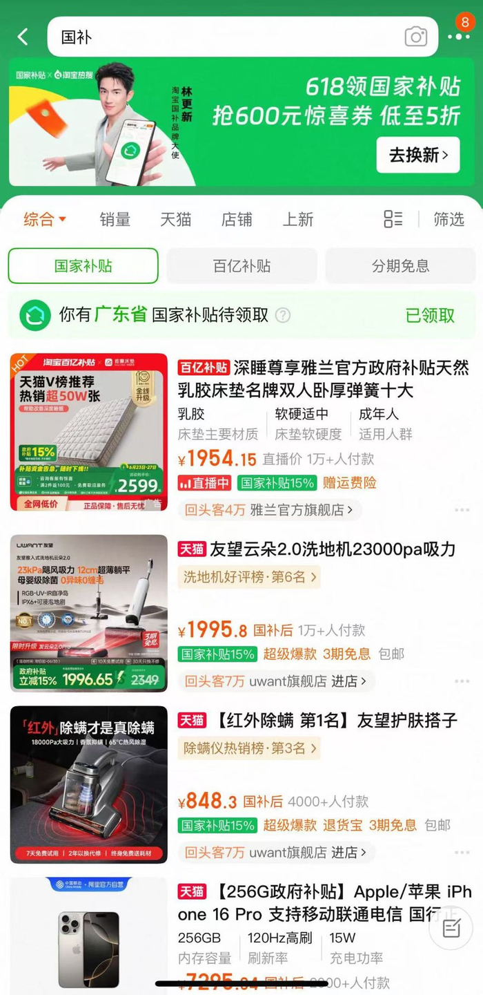 6月24日,在淘宝上搜索“国补”,就可以领到相应补贴。