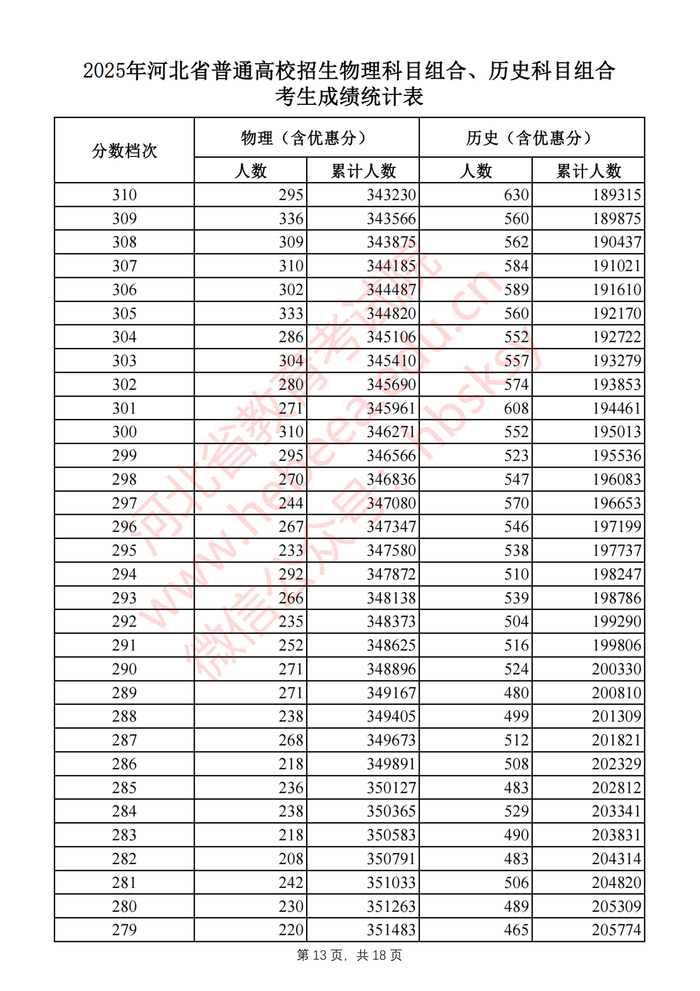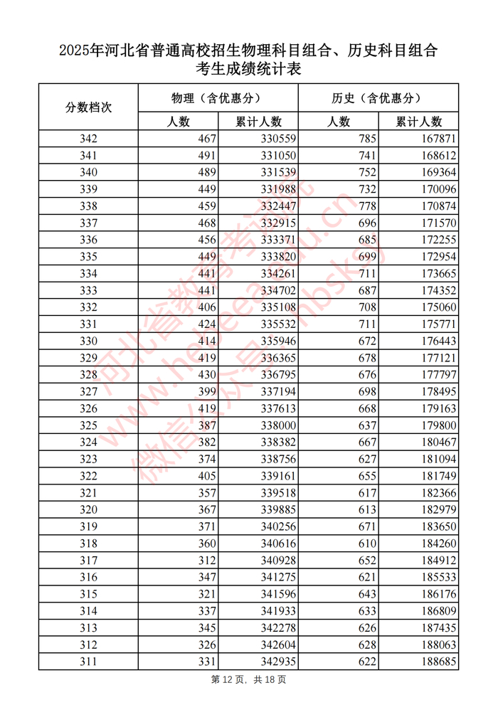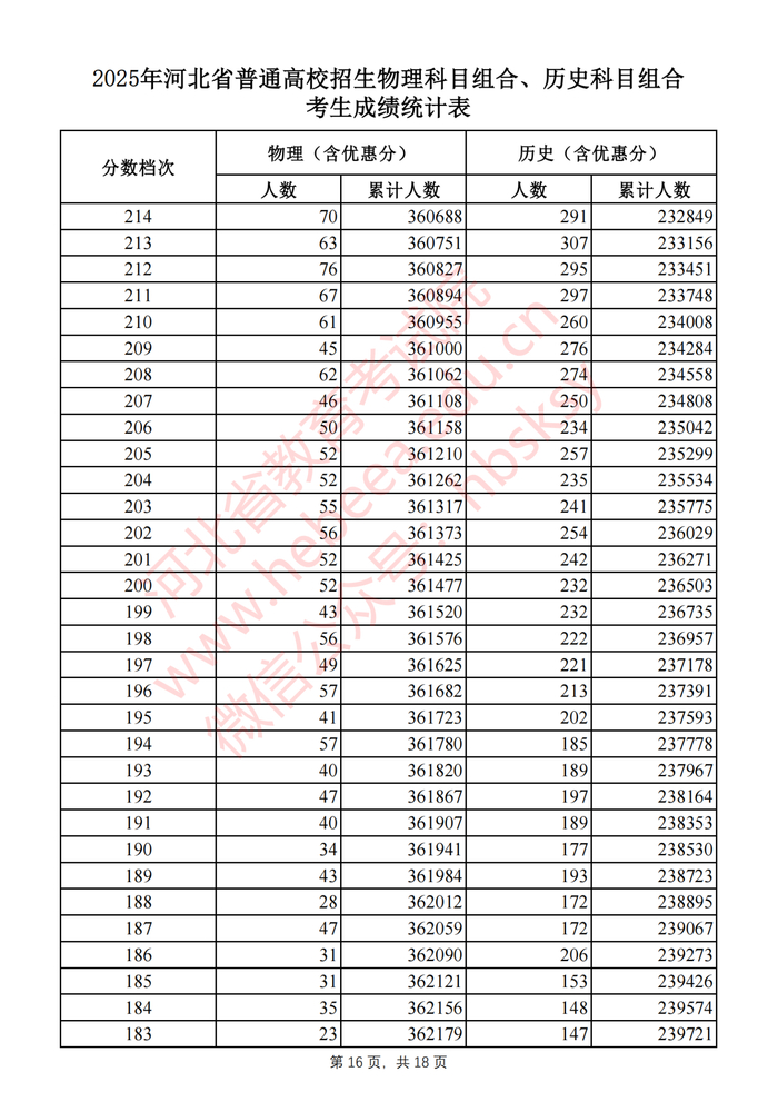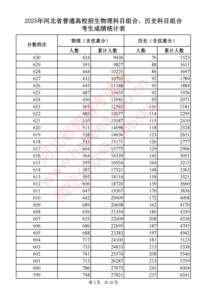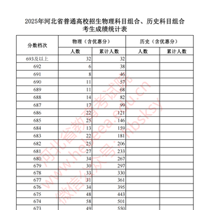2025年河北省普通高校招生物理科目组合、历史科目组合考生成绩统计表