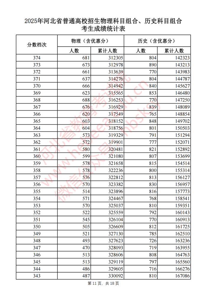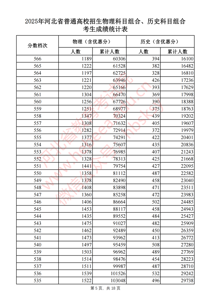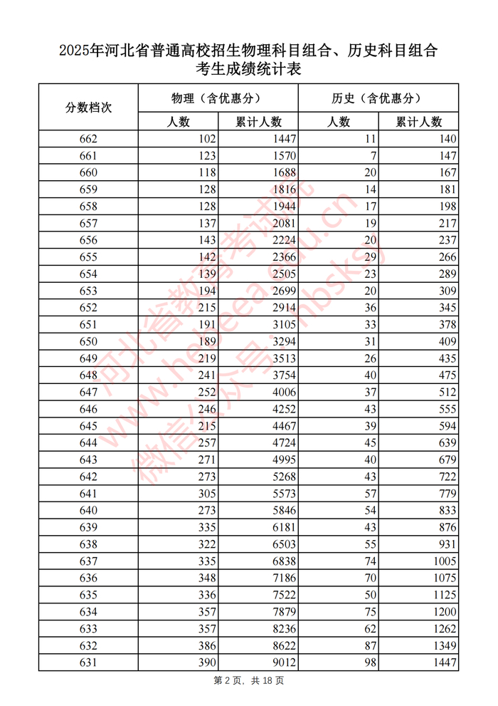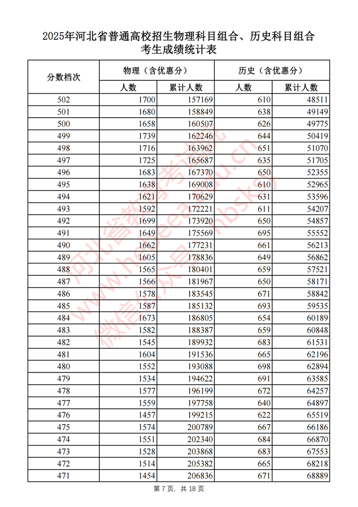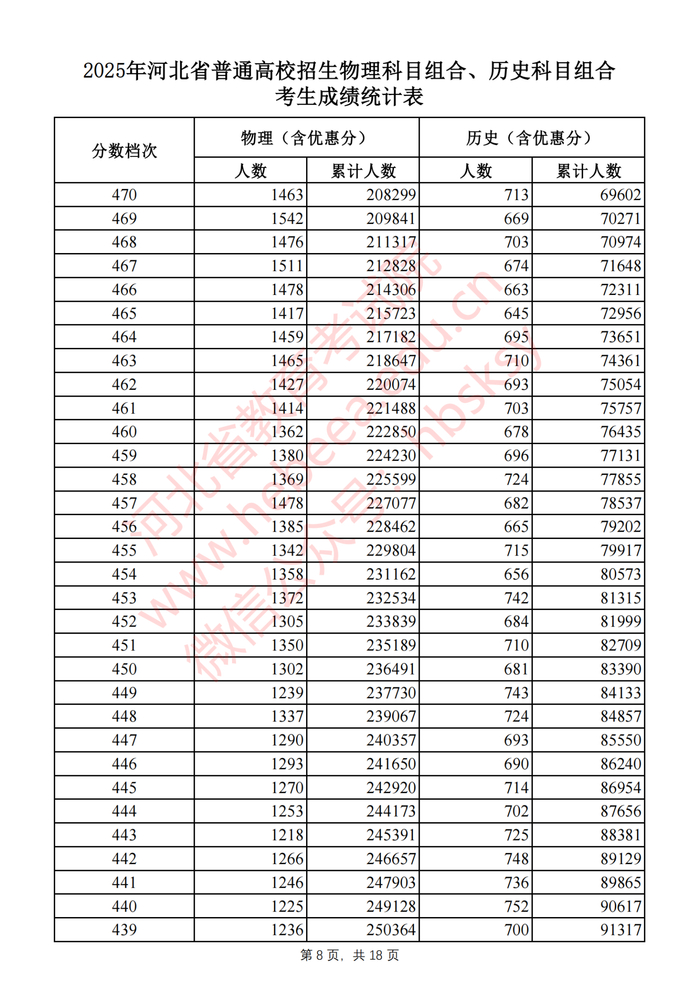 2025年河北省普通高校招生物理科目组合、历史科目组合考生成绩统计表