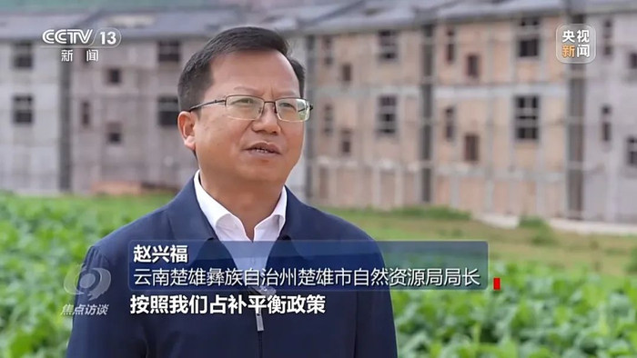 云南楚雄彝族自治州楚雄市自然资源局局长 赵兴福:占一补一、占优补优必须落实,按照占补平衡政策两种方式,一种是实施土地整治项目,产生的新增耕地用在项目上,另一种方式是用地质灾害隐患点的老村子,腾退老村子做成新增耕地。