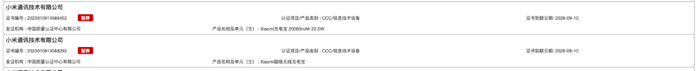 据国家市场监督总局,小米的“Xiaomi充电宝20000mAh 22.5W”、“Xiaomi磁吸无线充电宝”被暂停3C认证;绿联科技的“20000mAh自带线快充移动电源”3C认证资格同样遭到暂停,距离其初次获证日期仅为1年左右。