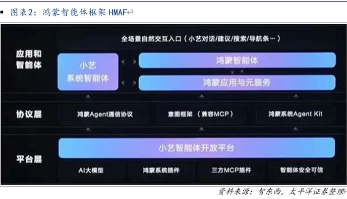 发布鸿蒙智能体框架HMAF,可实现多智能体协同。该框架不仅具备智能体的理解、规划、决策、执行任务与调用能力,还能允许系统级小艺智能体与第三方智能体无缝协同、提供服务,完成复杂任务。基于该框架,首批50余个智能体即将上线,包含微博、喜马拉雅、大众点评等各类常用应用智能体。