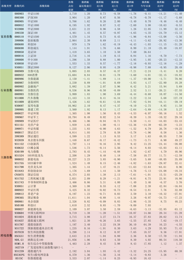 2025年6月24日A股主要指数涨幅情况