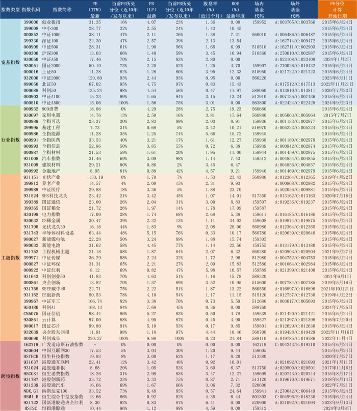 2025年6月24日A股主要指数估值表