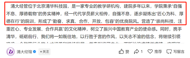 在上述的文章中,“清大经馆”还提到,携手清华……我院基于百年清华文化的深厚积淀。