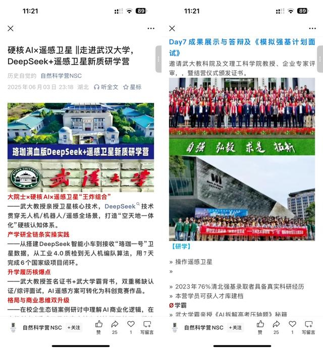武汉大学发布声明背后是,“魔豆梦工厂”“瑞涉奇研学”等机构利用“武汉大学强基计划”“李德仁院士团队”等相关概念发布“2025武汉大学硬核科技研学夏令营”,宣称“武大教授亲授卫星核心技术,7天完成6个国家级项目闭环”;“武大教授签名证书+武大学霸背书,双重稀缺认证/综评面试,AI遥感方案可转化为科创竞赛作品”等。