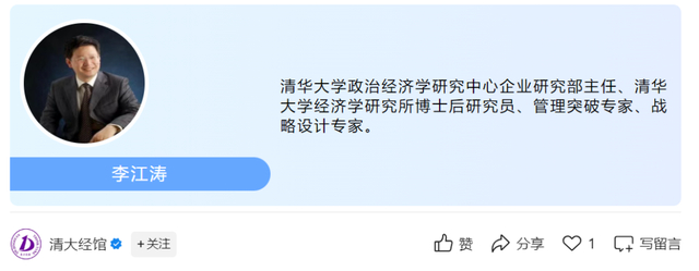 在“清大经馆”2021年的一份介绍中,李江涛的身份则是清华大学政治经济学研究中心企业研究部主任。