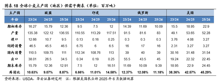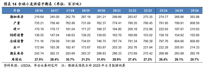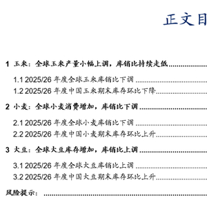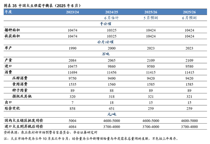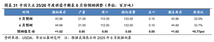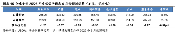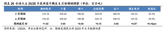 本报告摘自华安证券2025年6月22日已发布的《【华安证券·农林牧渔】行业专题:农产品行业系列报告五:6月USDA上调全球玉米、小麦产量,大豆产量环比持平》,具体分析内容请详见报告。若因对报告的摘编等产生歧义,应以报告发布当日的完整内容为准。