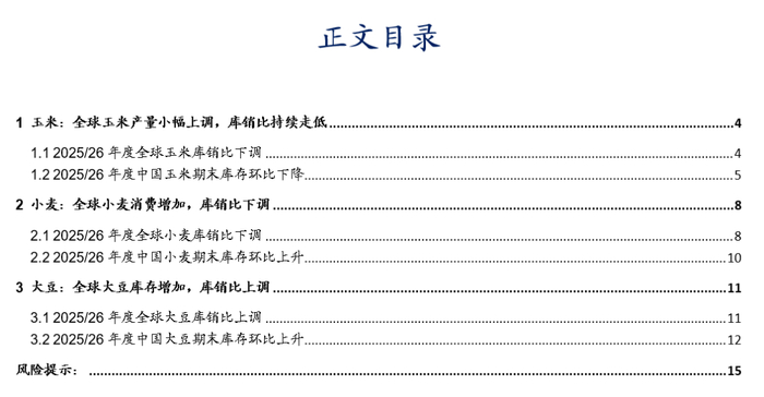 1.1 2025/26年度全球玉米库销比下调
