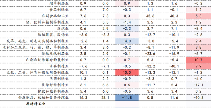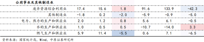 分三大门类看,制造业生产小幅回落,采矿业与电热燃水业生产保持稳定。分工业行业看,上游采掘与原材料加工业的生产延续4月水平,盈利情况依然低迷,其中黑色、有色产业表现相对较好;中游装备制造业生产增速虽有放缓但仍维持高位增长,同时利润增速普遍明显加快,5月份交通运输设备制造业表现突出,增加值增速达到14.6%、利润增速也达到59.2%的高位,同时汽车制造业、电气设备制造业、电子设备制造业等也呈现生产高速增长、利润加速修复的态势;下游消费品制造业生产略有回落、盈利普遍下降,其中文娱用品制造业、农副食品加工业生产增速较高、印刷业利润恢复较多。