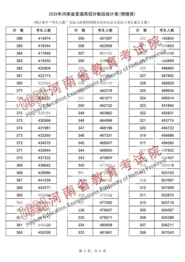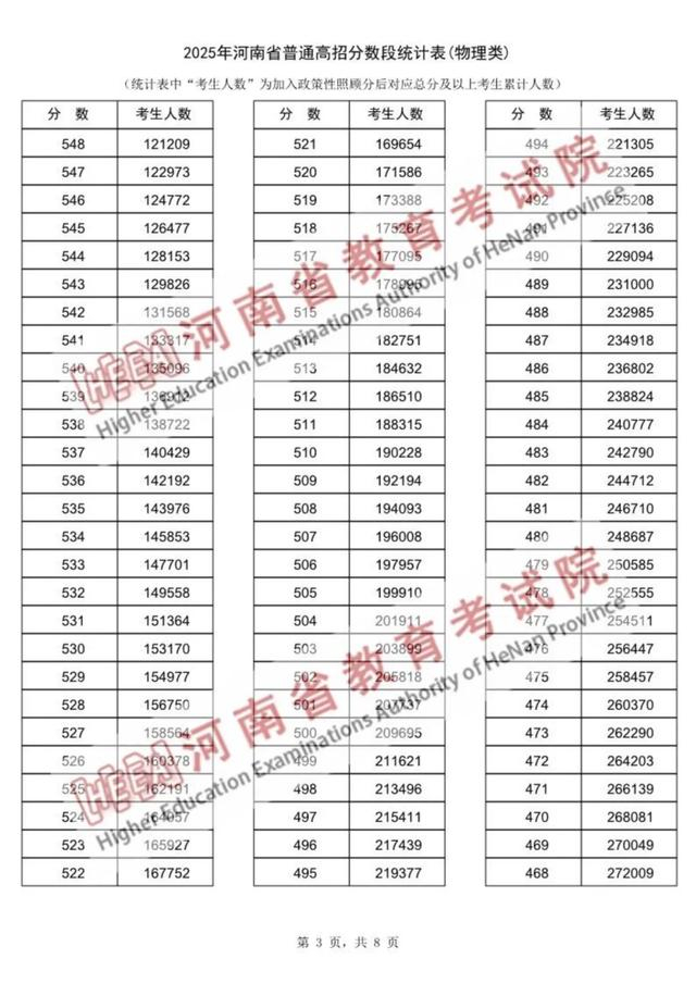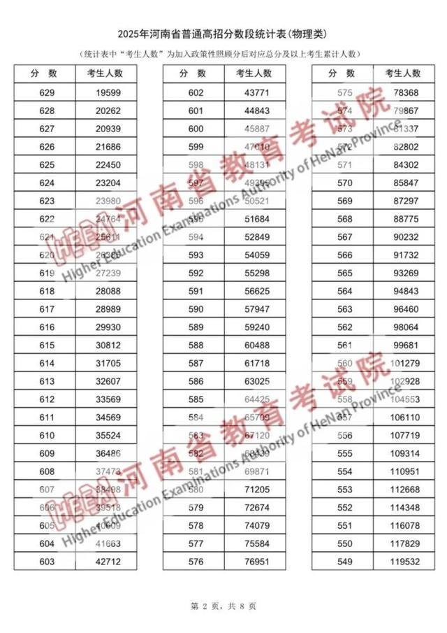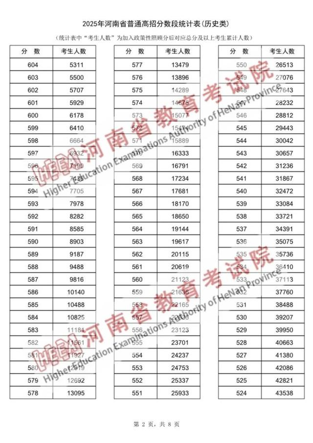 2025年河南高考一分一段表来了!