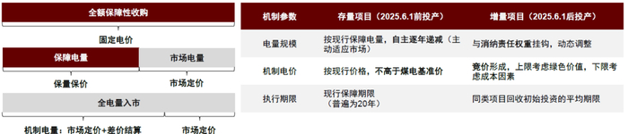 ► 对于存量项目,保持政策衔接。机制电量规模与现行政策衔接,每年自主确定执行机制的电量比例、但不得高于上一年。机制电价按现行价格政策执行,不高于当地煤电基准价,执行期限按照现行政策保障期限确定。我们认为,各政策细节以保障性、衔接性为主,老项目收益有望保持相对稳定。