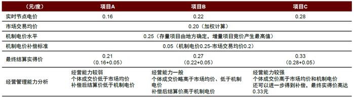 图表3:新能源项目在机制电价结算机制下的电价收益对比