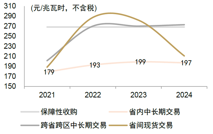 参考中信建投明阳智能REIT的红土井子风电场市场化交易比例和价格情况,2022-24年,风电场市场化交易比例达到80%左右,省内中长期交易电价(不含国补、不含税)企稳在0.19~0.20元/千瓦时,2022、2023年均出现小幅上行,2025年项目年度省内中长期签约电价(不含国补、不含税)为0.19元/千瓦时。