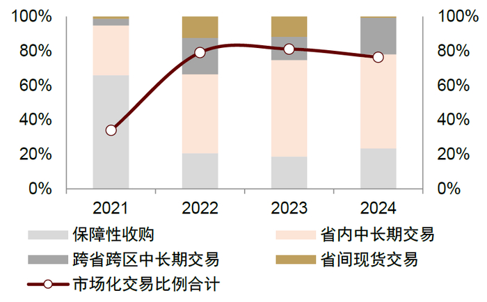 注:市场化交易比例为除保障性收购电量以外的电量占比资料来源:基金公告,中金公司研究部