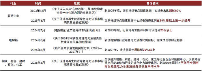 图表12:高耗能行业绿电绿证消纳要求政策梳理