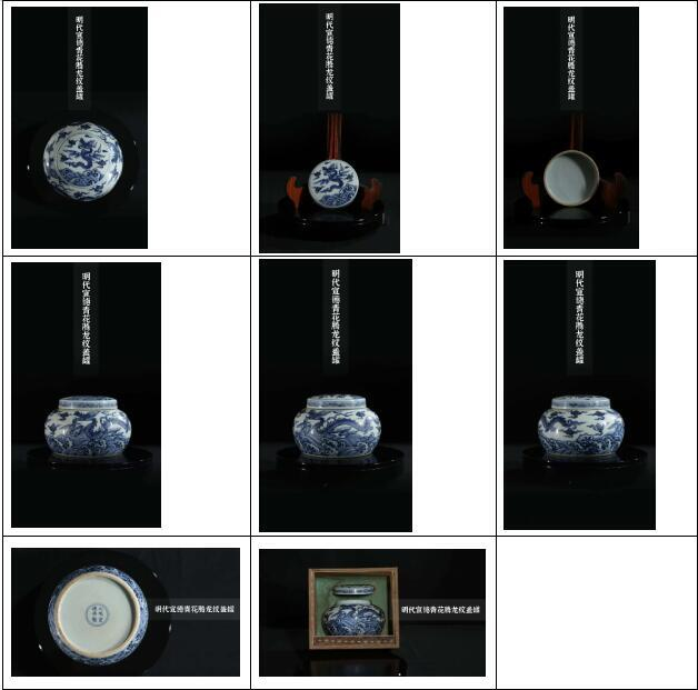 1.本器的器型及地位 。查阅全球御制陶瓷艺术品资料,就可证明盖罐为所有器型中最高等级之器(含冠被盖了)。细分盖罐有六种形态,无钮二种(钮上有图和无图),有钮二种(图上有图和无图),还有两种系罐用上下胚胎拼接和无拼接的。制瓷业有个说法:精致典雅的小器难制难绘难烧,最为精贵;大器易制难烧;无接缝之罐最难为。直接表述:制罐一般均是上下胚胎合成,如一体拉坯而成,在烧造时因应力作用在旋弧处易破损。本器系非常罕见的一体拉坯无接缝之罐,最为难烧(需达到1400度左右)。如今查询到博物馆资料,仅北京故宫台北故宫博物院上海博物馆有五件宣德朝盖罐(上图为证),而本器系唯一罕见的宣德青花龙纹盖罐存世,弥足珍贵。北京故宫博物院藏《明宣宗宫中行乐图》记述宣德帝闲暇游戏之景,卷中描绘方桌上、山水案屏前,陈设各式金质酒器,其中三件青花龙纹盖罐器托以红漆座,罐旁亦见执壶、瓶器、合盌、杯及杯托,可见朱瞻基对于本器龙纹盖罐之喜爱。众所周知,国人口口相传,按照宣德皇帝要求,重要的瓷器烧造完毕后仅能留选唯一一件(或对)送达宫廷,其余均必须就地破碎掩埋。为此,本人这次特意查询了一下,世界各大博物馆馆藏宣德时期青花瓷器(有百件宣德时期青花瓷器),尤为突出的显示,绝大部分系唯一孤品,极个别可能成对,但一对也是唯一的。