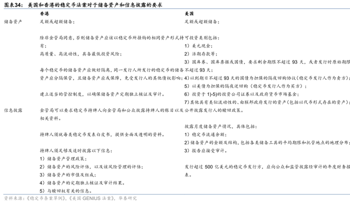 美国和中国香港对于稳定币的立法确立了持牌经营、足额储备、公开透明等原则,以此将稳定币从之前的缺乏监管状态引入到依法合规的轨道上。反洗钱之外,监管的重点是储备资产的充足性以及信息的公开透明。