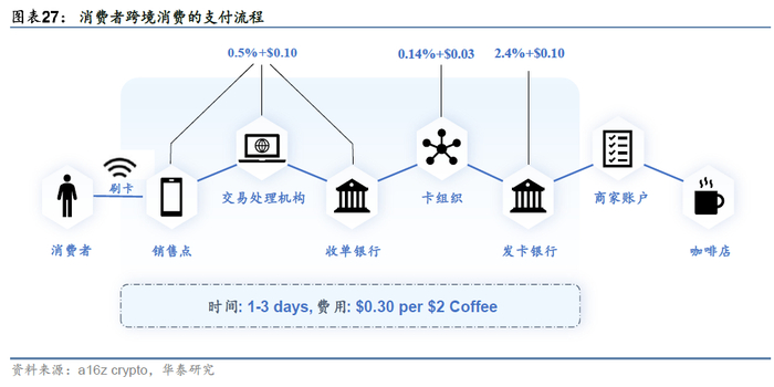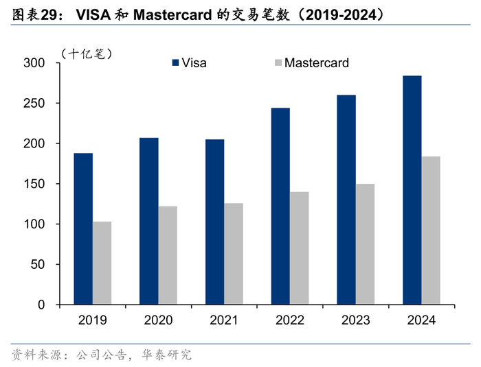 在传统的跨境消费中,VISA、Mastercard这样的信用卡组织承担了核心的清结算功能,也因此收取了丰厚的交易手续费。2024年,两家卡组织处理了4600多亿笔交易,交易金额约20万亿美元。