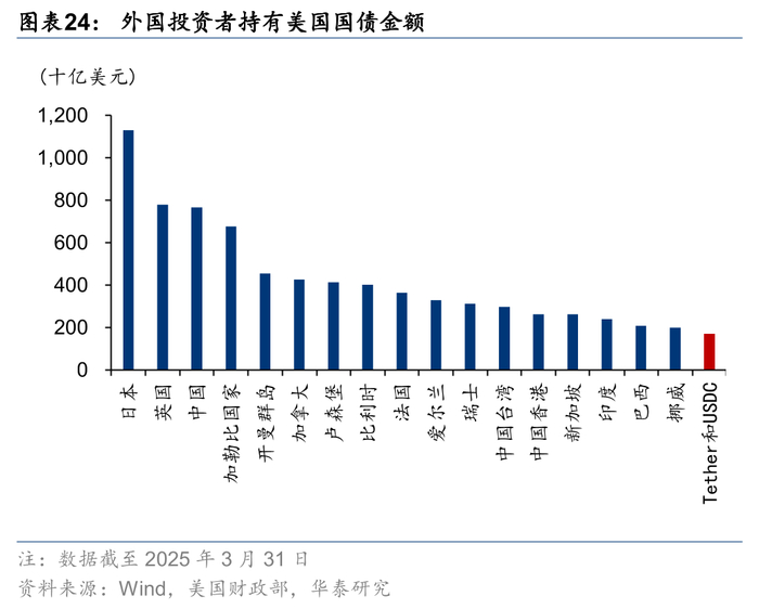 如果要发行离岸人民币稳定币,香港地区的离岸人民币或将是主要储备资产,这些储备资产也可以成为境外人民币国债的购买来源。根据Wind数据,截至2025/6/23,境外发行的人民币国债(未到期)的发行总额约2,638亿元,发行主体包括财政部、地方政府以及中国香港政府。