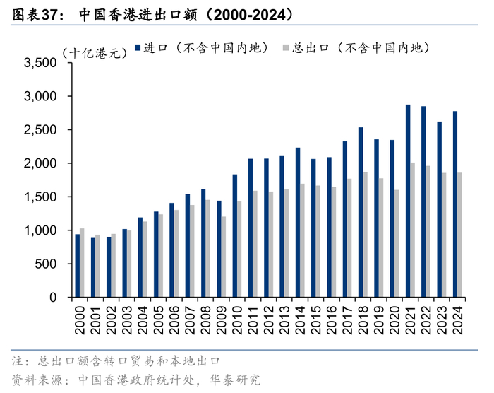 港币稳定币可能主要用作支付媒介,尤其是是跨境贸易。中国香港的跨境贸易繁荣,规模达到万亿港元级别。2024年中国香港的进/出口额(不含来自/销往中国内地)分别约为2.8/1.9万亿港元。此外,2023年中国香港的离岸贸易额(目的地不含中国内地)约为2.7万亿港元。离岸贸易是指货物不经过中国香港海关,由中国香港企业居中撮合境外买卖双方完成贸易的一种国际贸易方式,不纳入进出口额的统计。我们统计范围内的离岸贸易只包括转手商贸活动(过程中拥有所涉及货品的所有权),不包括与离岸交易有关的商品服务(只安排买卖,不具有所涉及货品的所有权)。大量的跨境交易为稳定币的运用提供潜在空间,港币稳定币在跨境支付时成本更低、时间更短,未来在跨境贸易支付中或更有发展前景。