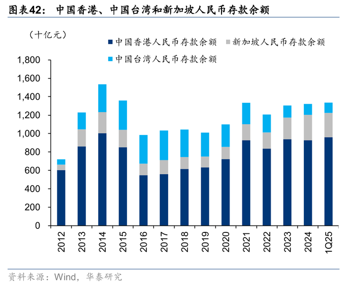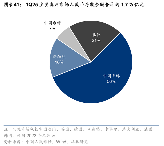 11.离岸人民币稳定币还远吗?中国香港立法不排除人民币稳定币,离岸人民币稳定币或成为可能并助力人民币国际化。离岸人民币的规模稳中有升,1Q25末主要离岸市场的人民币存款约1.7万亿元,近期落地的跨境支付便利或增加离岸人民币规模。