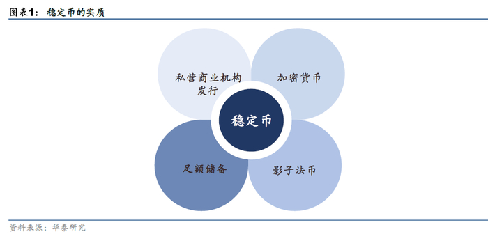 稳定币的实质是商业私营机构发行的货币,更确切的说是商业私营机构发行的具有足额储备的数字影子法币,我们认为有如下几个要点: